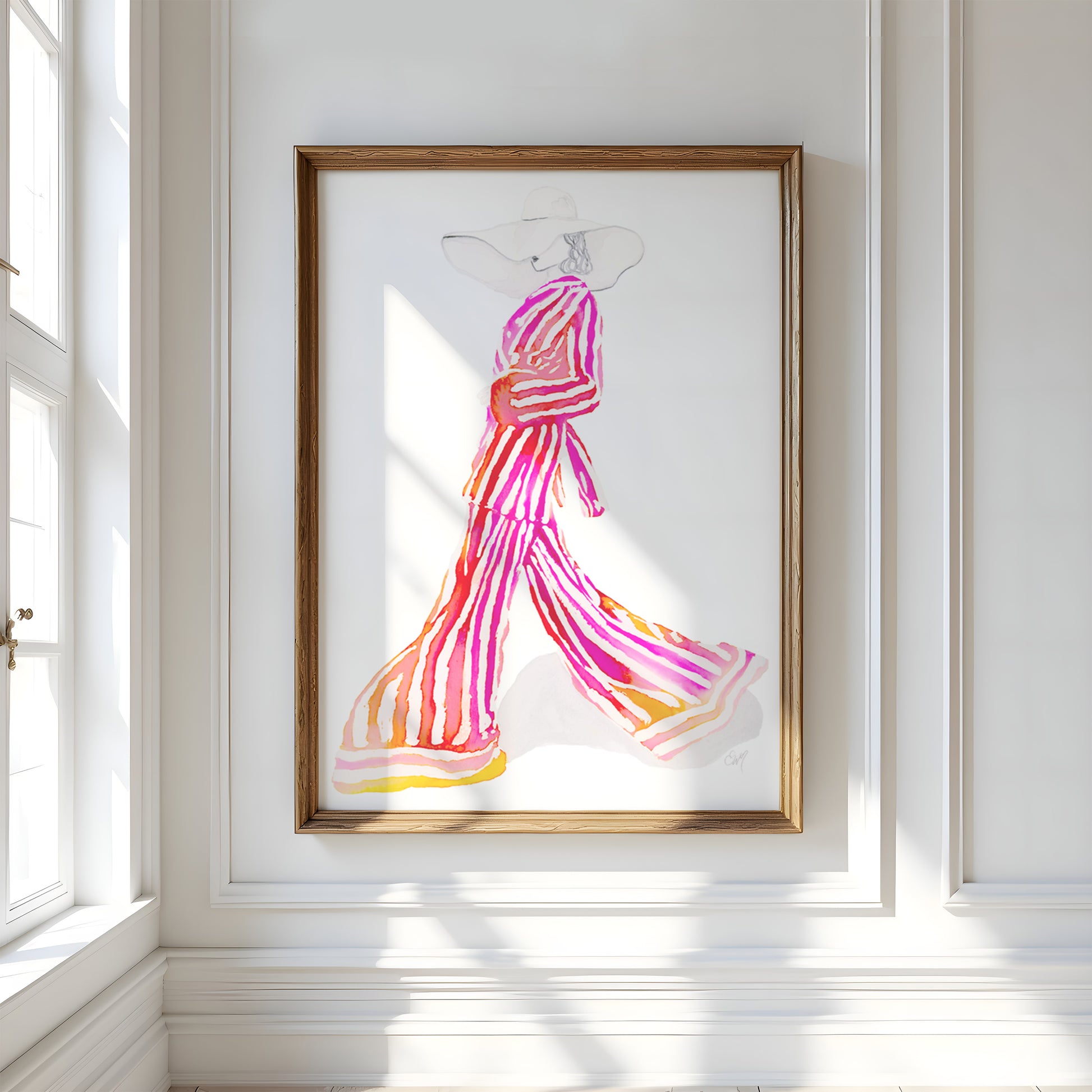 Pink and Yellow Striped Outfit | Fashion Art Print