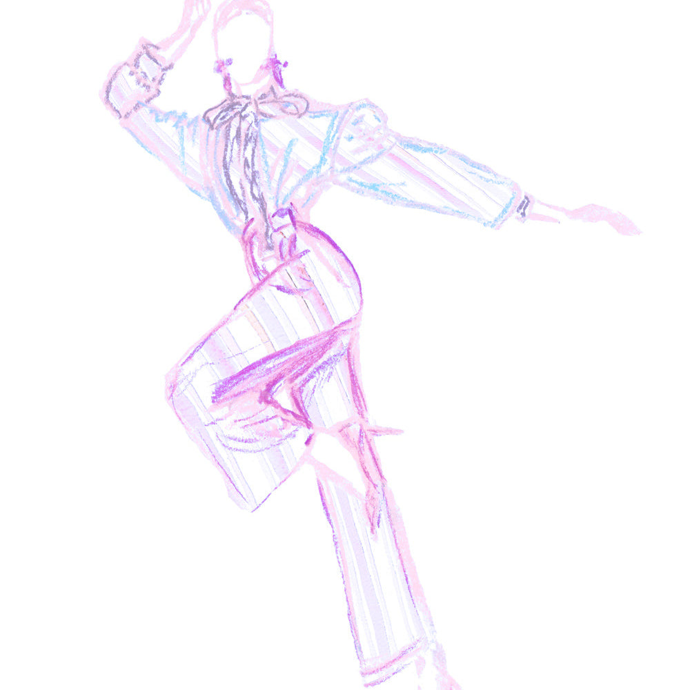 Lavender Striped Outfit Sketch | Fashion Art Print